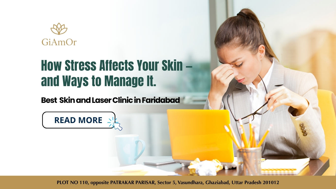 Stress doesn’t just affect your mind — it leaves a visible impact on your skin too. At GiAmOr Skin and Laser Clinic, the Best Aesthetic Clinic in Ghaziabad, our dermatology experts explain that chronic stress triggers hormonal changes in the body, especially an increase in cortisol, which can lead to acne breakouts, dullness, premature ageing, and even hair loss. When you’re stressed, your skin barrier weakens, making it more prone to dryness, irritation, and sensitivity. Conditions like eczema, psoriasis, and rosacea can also flare up under emotional pressure.